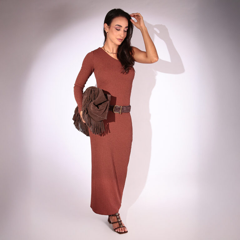 Top Feminino em Alfaiataria Alongado Marrom Carina