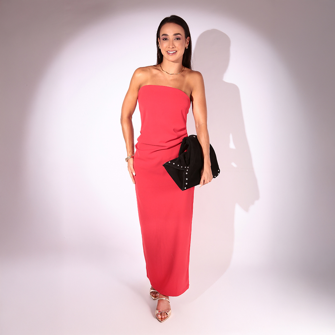 Vestido Feminino Louise Vermelho, produzido em 92% viscose e 8% poliéster.